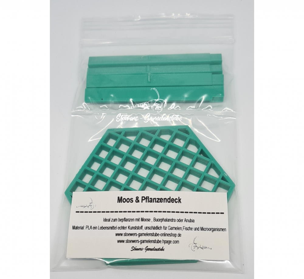 Das Moos und Pflanzendeck ist aus Lebendmittelchtem Kunststoff ( PLA ) hergestellt. Dieses Material ist unschädlich für Garnelen, Fischen und Microorgarnismen.